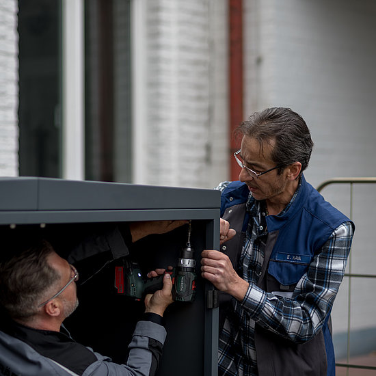 Box für 1-2 Fahrräder in Edelstahl und Pulverbeschichtung in einem Skelett aus
