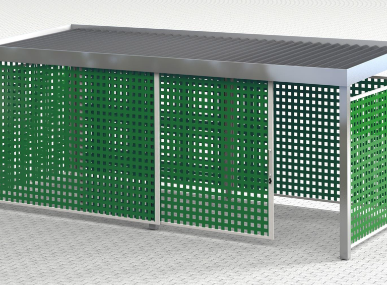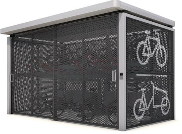- Fahrradabstellanlage mit Schiebetür Edelstahl pulverbeschichtet